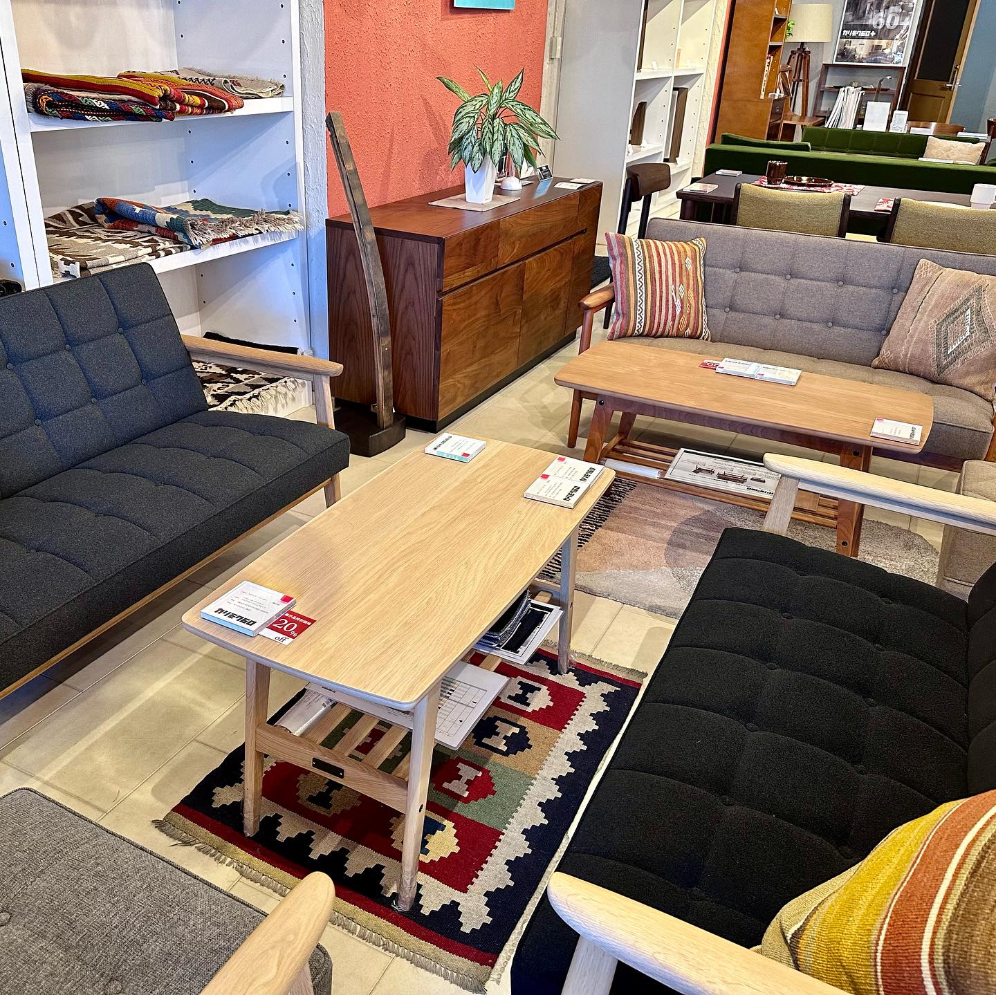 カリモク60だけでなく、相性の良い家具や、 雑貨・ラグ・照明などもセレクトで置いています。 カリモク60全アイテム展示しておりますので、 実際に座ったり、並び替えたりしながらお選びいただけます。