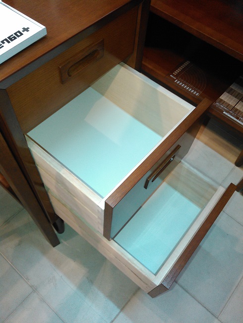 中にはご相談のお客様もいらっしゃいます(^^) その中で「お子様の学習机」でお悩みのお声が聞かれました。 お子様にとっての学習机って、ランドセルと同じくらい特別なんですよね(^^) いいものを永く使ってほしい。 けれど、大きくなっても使えるようなデザインや機能のあるものがなかなか 見つからない。 そこでご提案させて頂いたのがコチラです♪ ↓ ↓ ↓ (右)ライティングチェスト Type:オーク Color:ヴィンテージチーク W790×D400×H1082 ¥100,000+税 (左)シェルフ Type:ラバートリー Color:ウォールナット W700×D300×H1100 ¥48,000+税 中天板を引き出すとデスクスペースに。(左右の揺れを防止するストッパー付き) 開口部上段は引き出しタイプのミラー付き。 ミラーの角度は3段階の調節が可能。空いている下段には化粧道具も置けてしまいます♪ 開口部背面と天板には配線孔が付いており、スタンドライトやPC・携帯の充電器等の 設置にも便利な造りになっています。 そして、コチラのシェルフはかなりのスグレモノ! A4サイズから文庫本まで幅広い収納力を持っています。 デザインも、オープンになった上段2段は両面使いが可能、お部屋に置いた時の 開放感まで考えられたものになっているんです。 お次はコチラ。正統派のデスクセットです♪ (左)デスク Type:ラバートリー,オーク Color:ウォールナット W900×D550×H675 ¥48,500+税 (右)チェスト Type:ラバートリー,オーク Color:ウォールナット W315×D550×H675 ¥40,000+税 デスク側の引き出しは可動式になっており、座る位置によってスライドさせて 移動させる事が可能! こちらのチェスト、引き出し底板は「クリーンイーゴス」素材を使用しています。 傷に強く、水拭きも可能になっています! お掃除のしにくい引き出し内部も、簡単に拭き掃除が出来ますね。 デスク下にすっぽりと収まり、コンパクトにお使い頂く事も出来ます♪ 収納の用途によって、シェルフやマガジンラックをセッティングするのも いいかもしれませんね(^^) いかがでしたでしょうか? ライフスタイルや用途によって様々に形を変え、使う人に寄り添う。 永くお付き合い頂けるものを、私達はこれからも皆様にお届けしていきたいと思います。 皆様のご来店、心よりお待ちしております。 DingDingインテリアショップ 埼玉県さいたま市北区東大成町2-74-1 1F TEL/FAX 048-652-0962 E-mail info.dingding@gmail.com http://www.dingding.jp/ PR ● コメントフォーム |