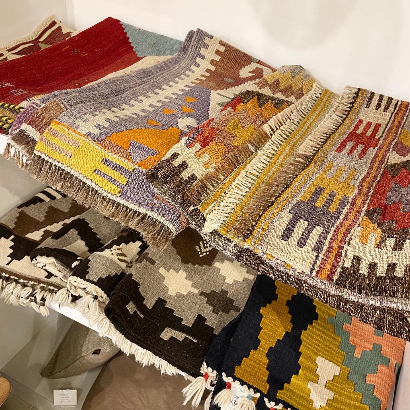 オールドキリムからニューキリムまで取り揃えています。 モノトーンの落ち着いた白黒キリムは合わせ易く人気です! 毛足の長いふっくらしたギャッベは玄関マットや、 Kチェア前に置くのにピッタリサイズです。 ⠀
