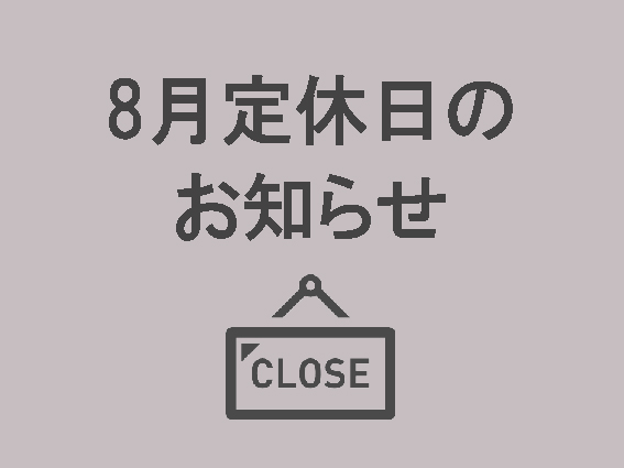2022年8月の定休日は毎週火曜日、 2日(火)、9日(火)、16日(火)、23日(火)、30(火) となります。 また、下記の3日間に夏季休業を頂きます。 8日(月)、9日(火)、10日(水) 8月11日(木)から通常営業です。 8月8日~10日のオンラインショップご注文、