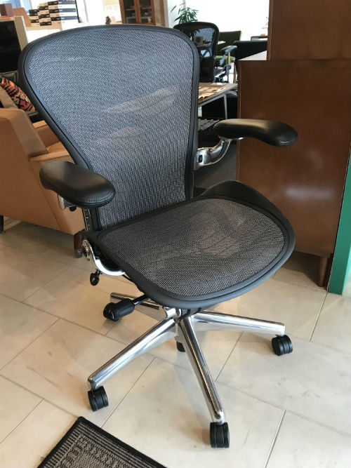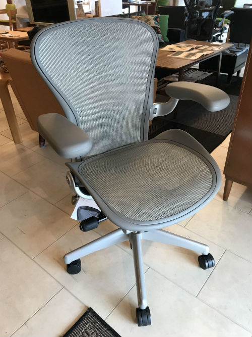 皆様いかがお過ごしでしょうか? ただいまDing Ding店頭では「アーロンチェア」を 期間限定! 現品特価! でご案内中です。 アーロンチェア(Aeron Chair)は ハーマンミラー社のオフィスチェアです。 座る人、一人ひとりの体型に合わせられるよう沢山の細かな調節機能があり、 腰にかかる負担を軽減してくれるため腰痛に効果があると言われています。 今回は3脚入荷致しておりますので、本日は1つずつご紹介致します。 ・アーロンチェア AE113AWB PJ G1 BB BK 3D01