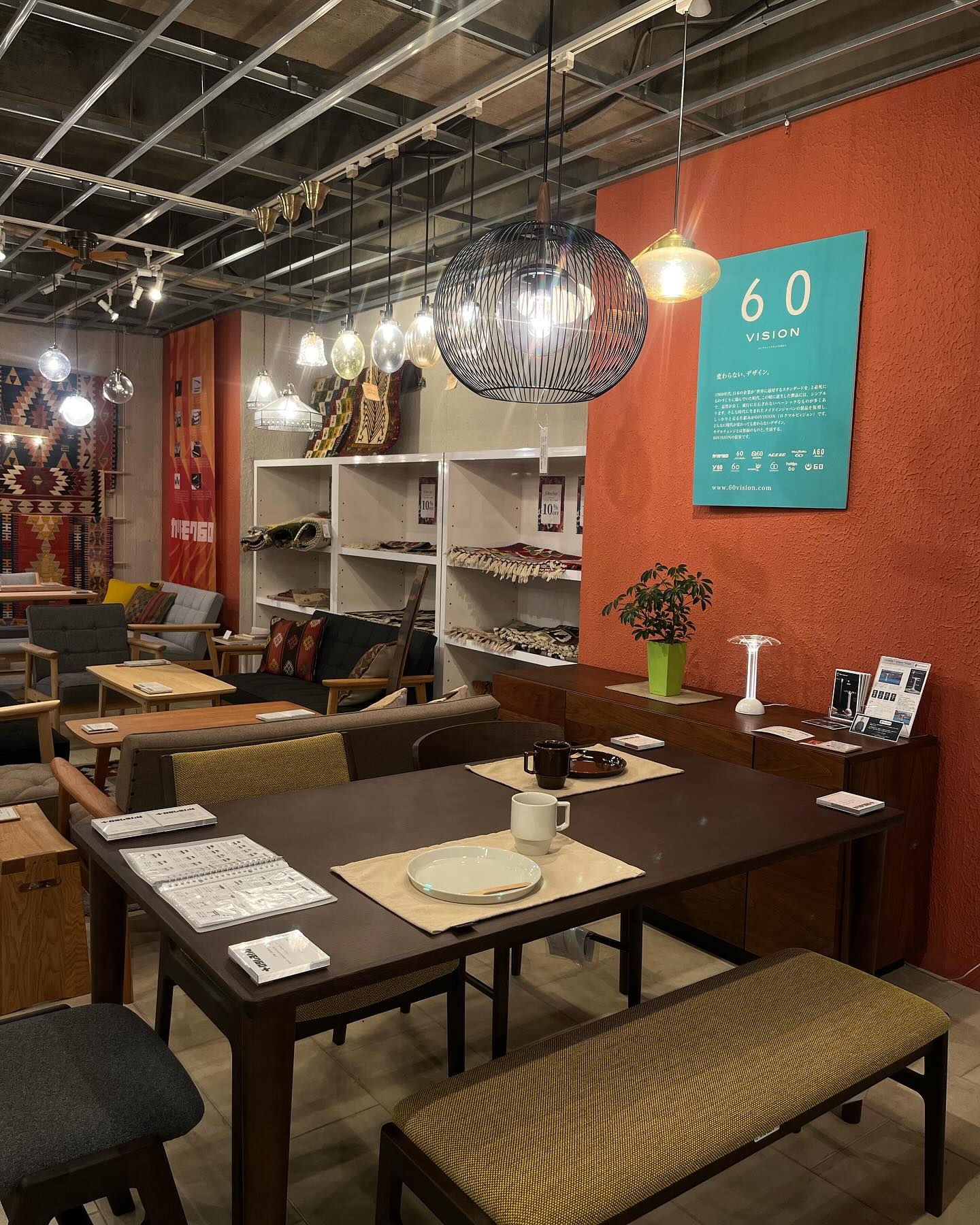 カリモク60だけでなく、相性の良い家具や、 雑貨・ラグ・照明などもセレクトで置いています。 カリモク60全アイテム展示しておりますので、 実際に座ったり、並び替えたりしながらお選びいただけます。