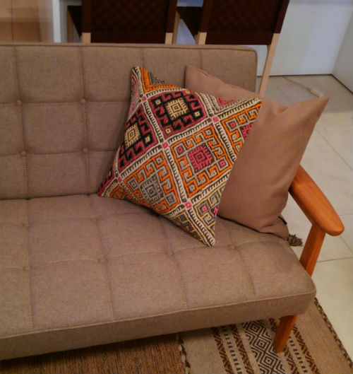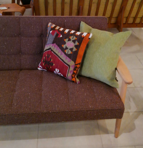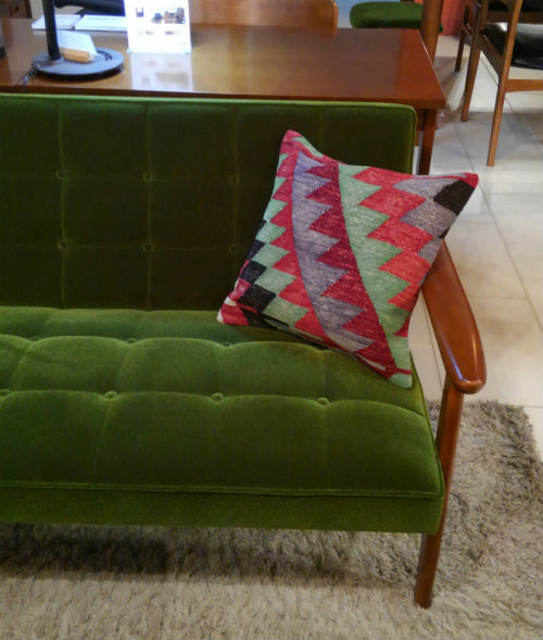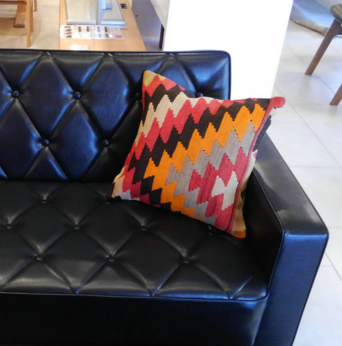 先日入荷したばかりのキリムクッションをソファーに置いてみました。 こんな楽しい色のクッションはお子様のいるご家庭にもピッタリ! モダンな柄が新鮮♪ 落ち着いた組み合わせもいいですよね~ 細かい手仕事はやはり魅力的♪ ご覧のように・・・ 手仕事が施されたクッションが加わると、グッと味わい深い印象になります♪ キリムは手織り物。 ほとんどが1点ものなので早いもの勝ちですよー。 皆様のご来店を心よりお待ちしております!