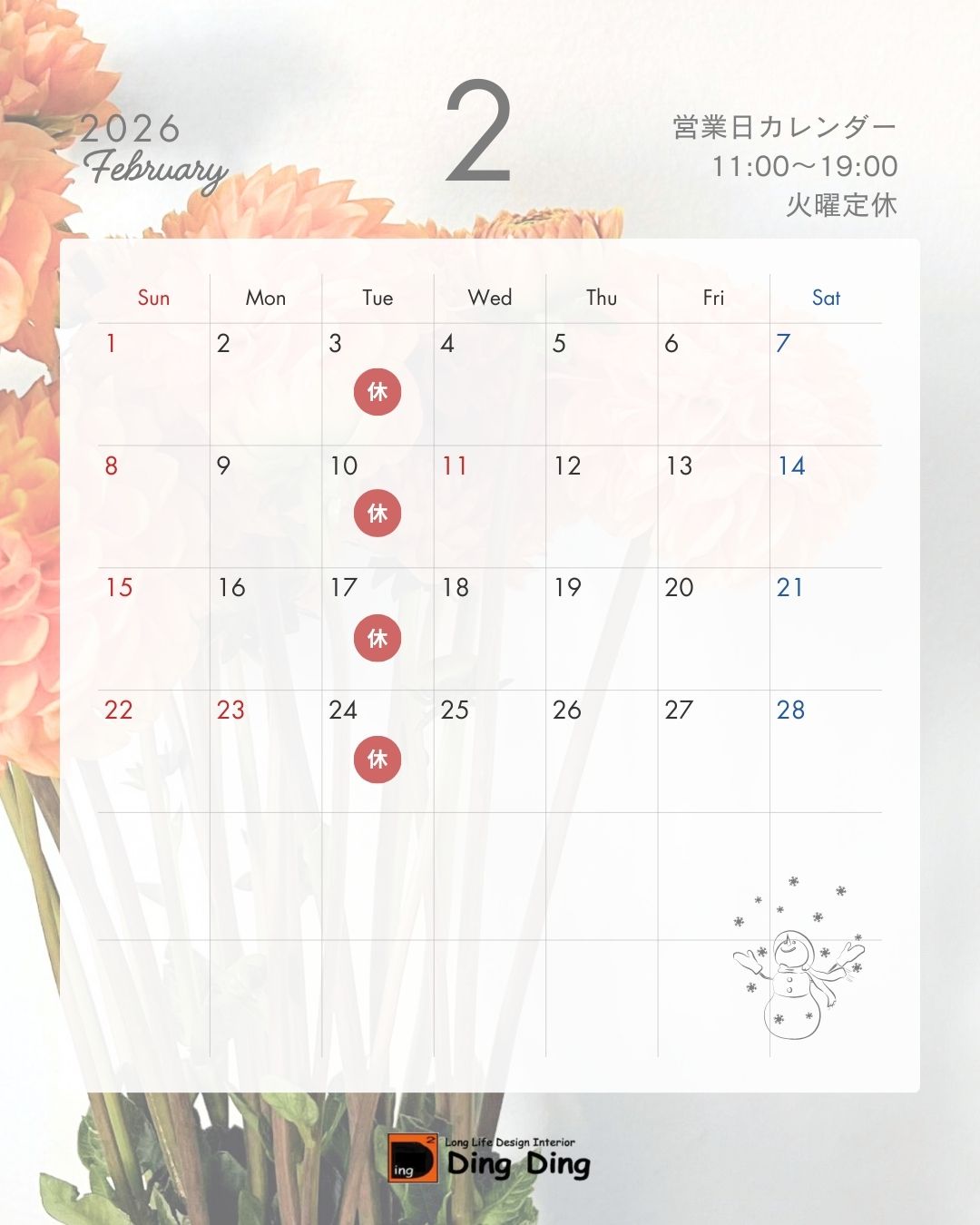 OPEN11:00~19:00 火曜 定休(祝日の場合営業)