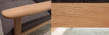アームトップの樹種がラバートリー材からブナ材に変更になりました! 左:旧 ラバートリー材 右:新 ブナ材 遠巻きから見るとほぼわかりませんが、 樹種の変更により木目の出方に少し違いが出ています。 Kチェアのアームは1本の材料を削り出して加工をしていますが、 これらの問題を解消するため、 PR